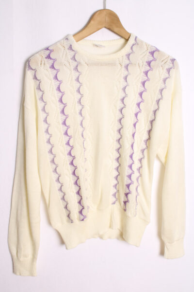 Jersey Blanco Vintage con Brillos Lavanda «M»