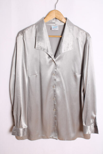 Camisa Plateada Vintage Cuello con Brillos «XL»