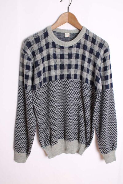Jersey Acrílico Vintage Damero Azul y Gris «M»