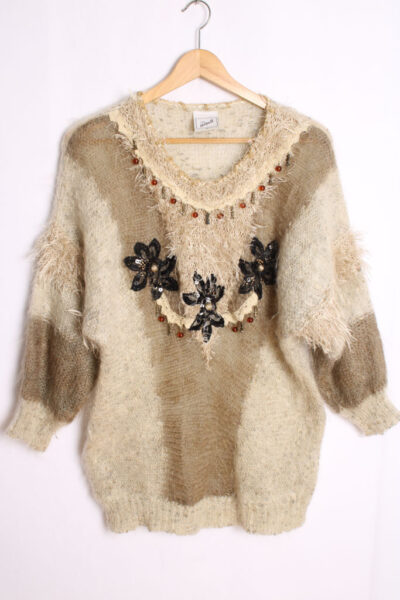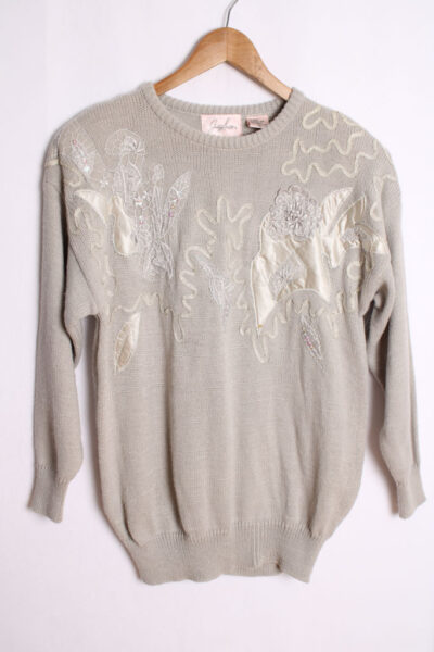 Jersey Gris Vintage con Flores y Pedrería «L»