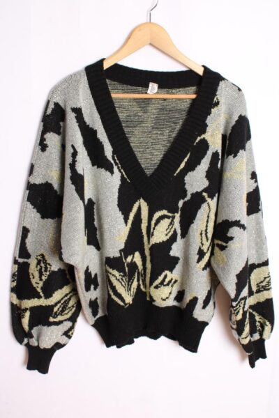 Jersey Negro y Plateado Vintage Cuello Pico «M/L»
