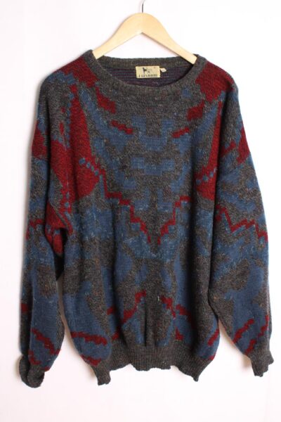 Jersey Cenefas Azules y Rojas Vintage con Lana «L»