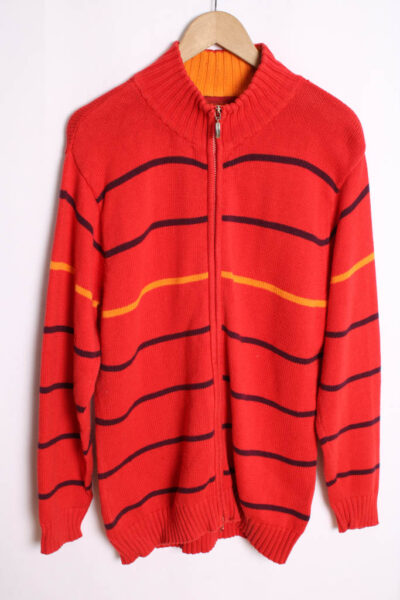 Cárdigan Cremallera Vintage Rojo Rayas «S/M»