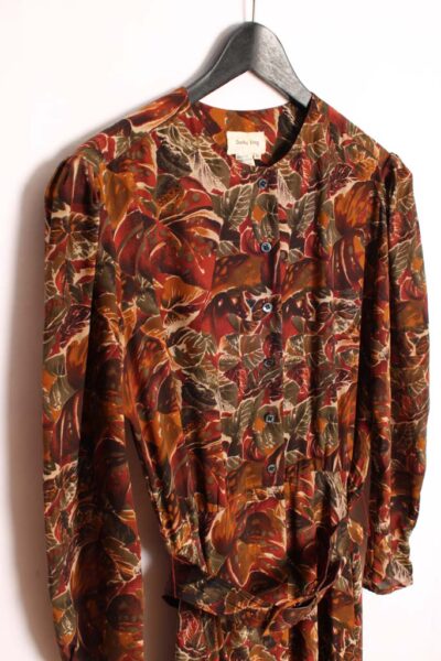 Vestido Americano de Seda Vintage Tonos Marrones «L/XL»