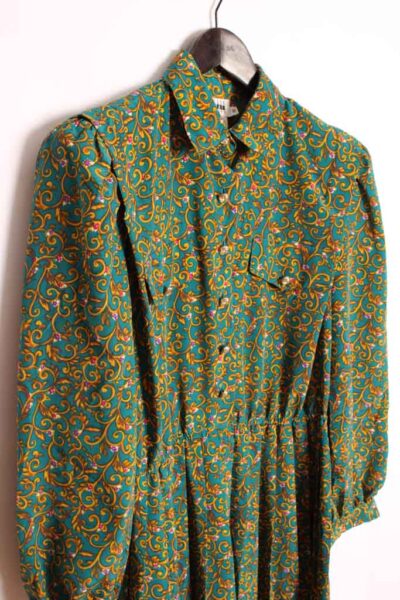 Vestido Americano Vintage Verde y Azul Paisley «L/XL»