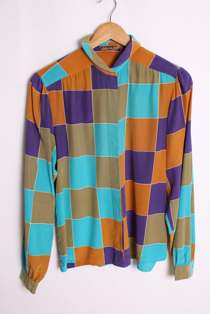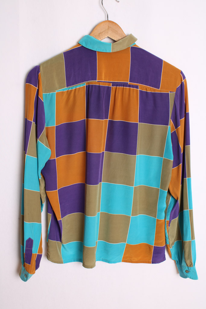 Blusa de Seda Vintage Estampado Cuadros «M»