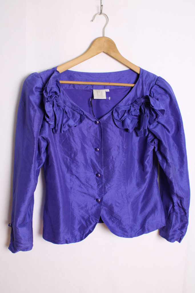 Blusa en tono morado con detalles de lazos en los hombros en tono morado.
