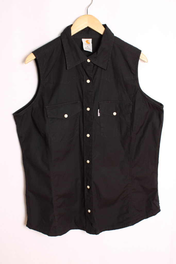 Camisa vintage estilo western de la marca Carhartt en color negro sin mangas.