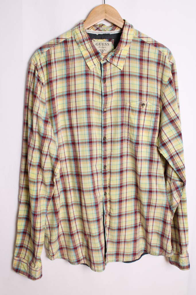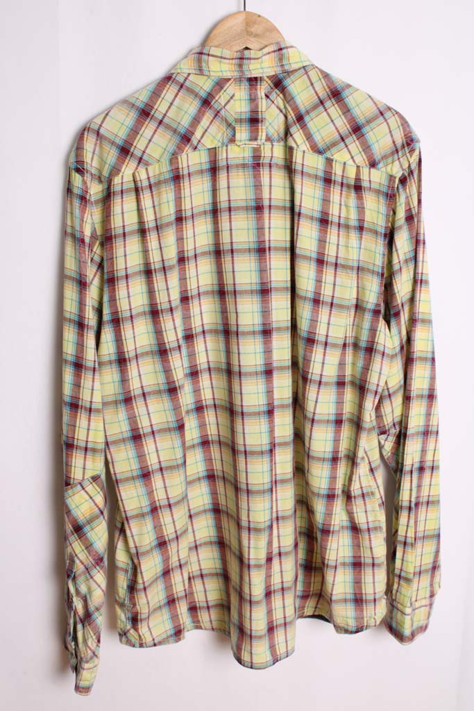 Camisa vintage estilo western de la marca Guess en cuadros de color amarillo.