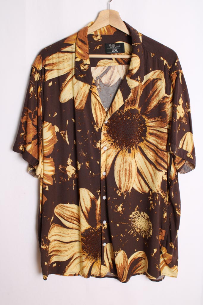 Camisa Hawaiana Vintage Marrón con Flores «XL»