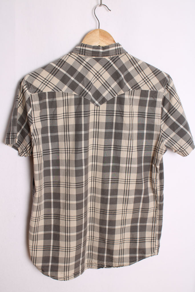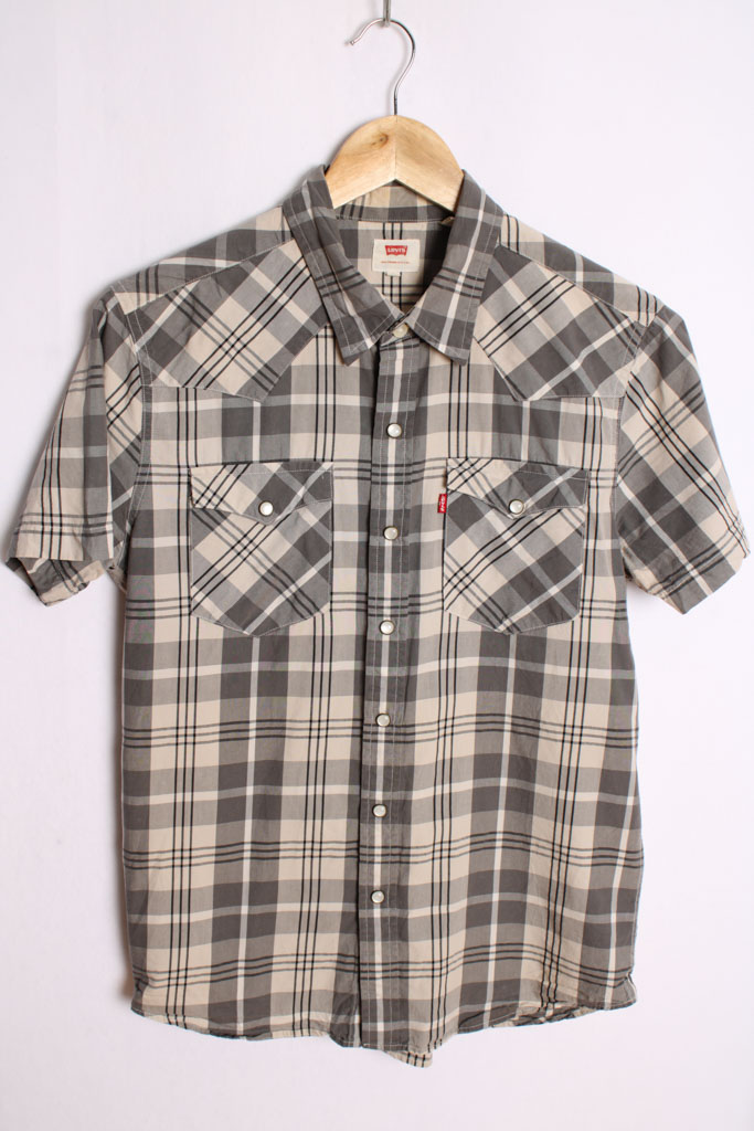 Camisa vintage de estilo western de la marca Levis  en cuadros de tonos grises.