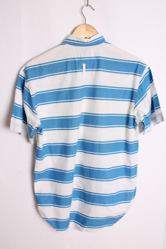 Camisa vintage de verano con estampado de rayas en colores azul y blanco.