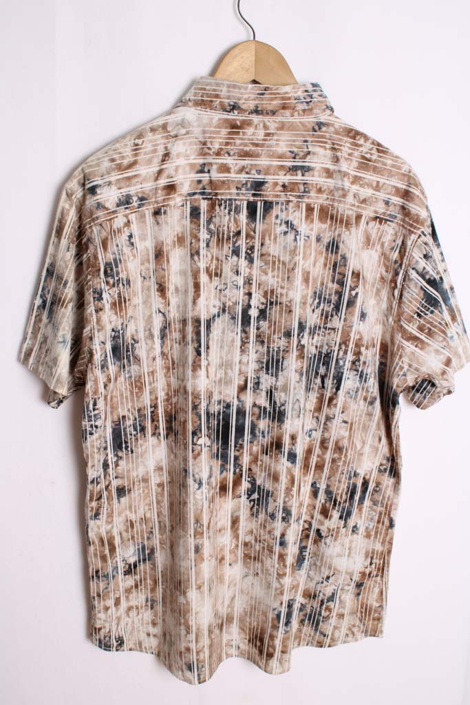 Camisa años 90 con estampado de rayas en tonos blanco y azul petróleo.