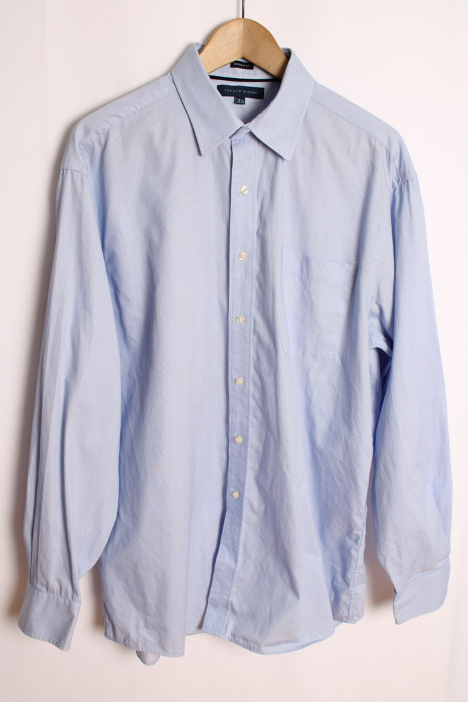 Camisa vintage de la marca Tommy Hilfiger en rayas azules y blancas.