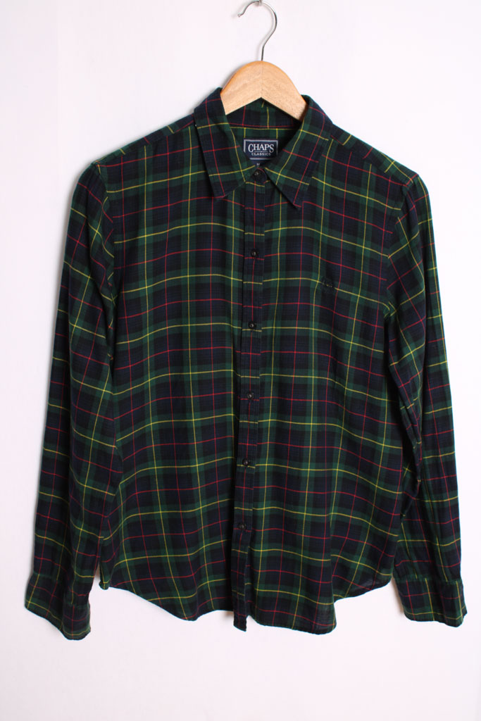 Camisa de la marca Chaps con estampado de cuadros en tonos verde, amarillo, rojo…