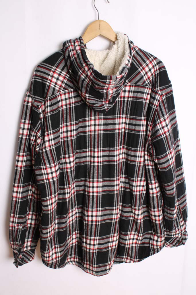 Camisa de cuadros para chica con interior forrado de borreguillo y capucha incorporada en tonos negro, blanco, rojo…