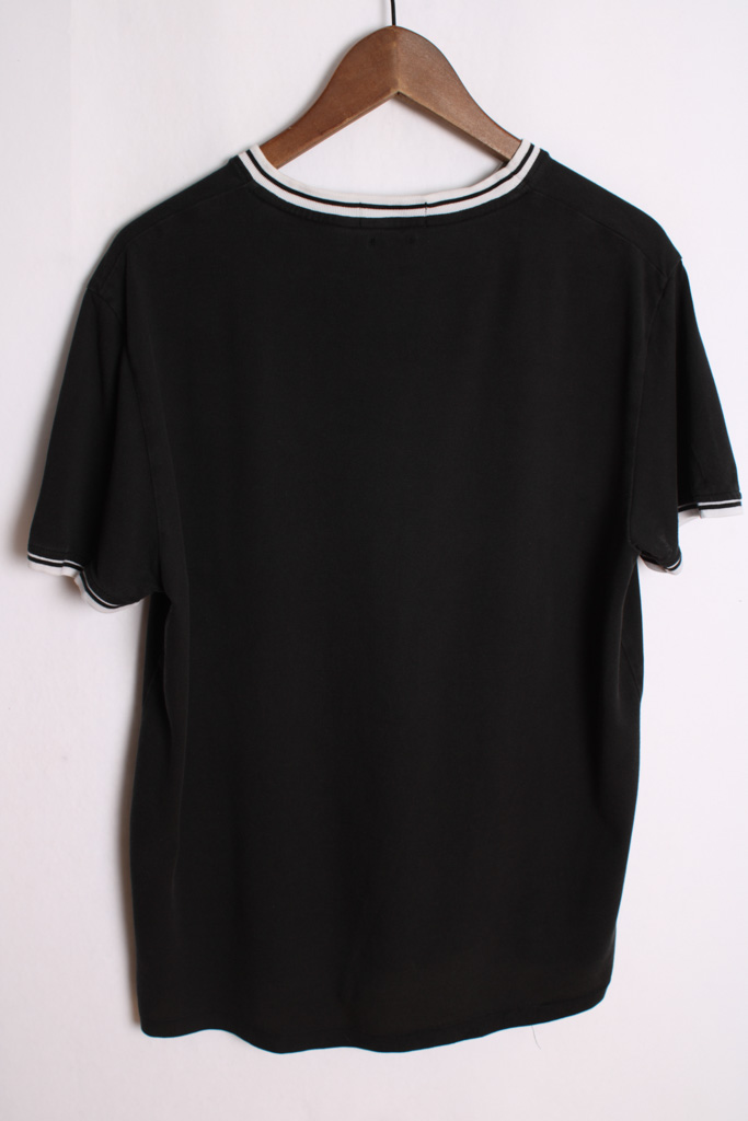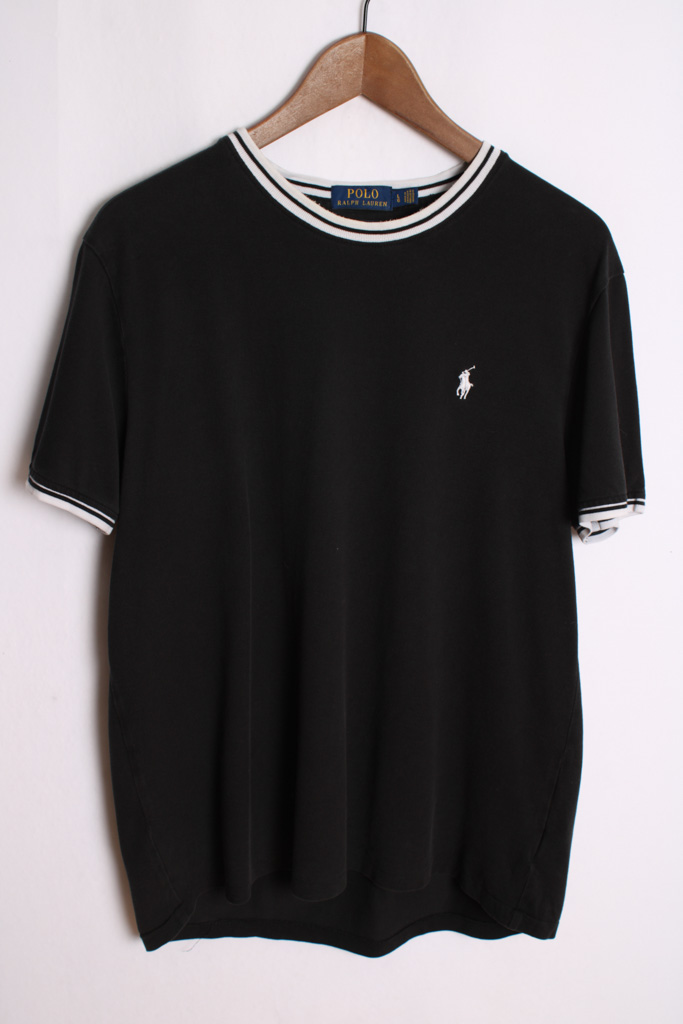 Camiseta unisex vintage de Ralph Lauren en color negro con detalles en blanco en el cuello y mangas.