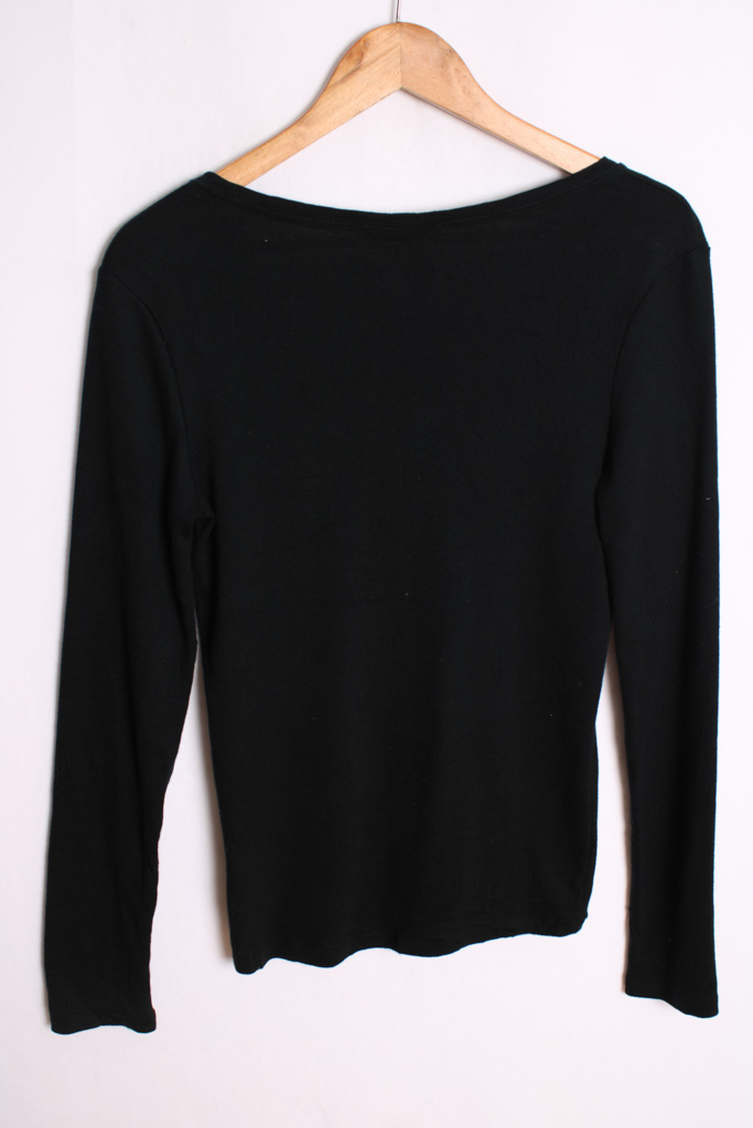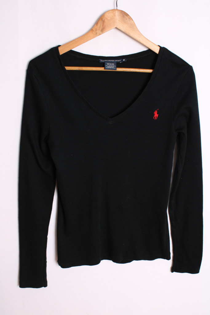Camiseta para mujer de Ralph Lauren en color negro de manga larga con cuello pico.