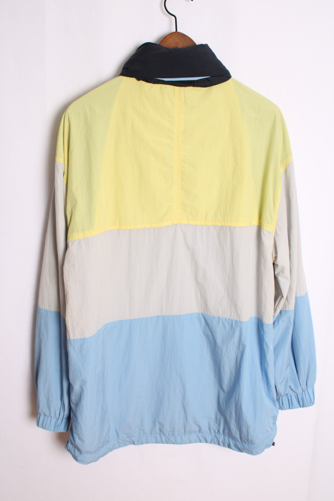 Crazy jacket tipo canguro de la marca Lee con capucha extraible en el cuello en tonos pastel azul y amarillo.