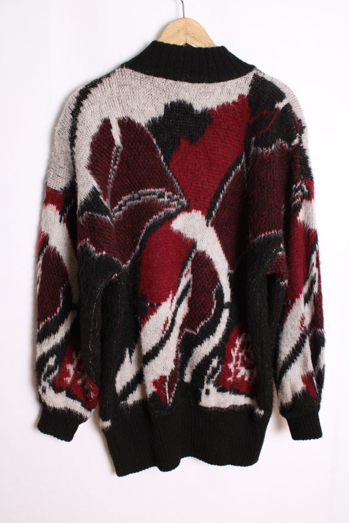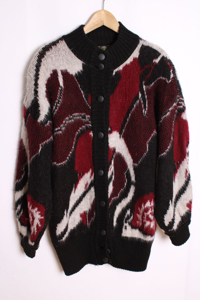 Cárdigan Print Abstracto Vintage Negro y Rojizo «L/XL»