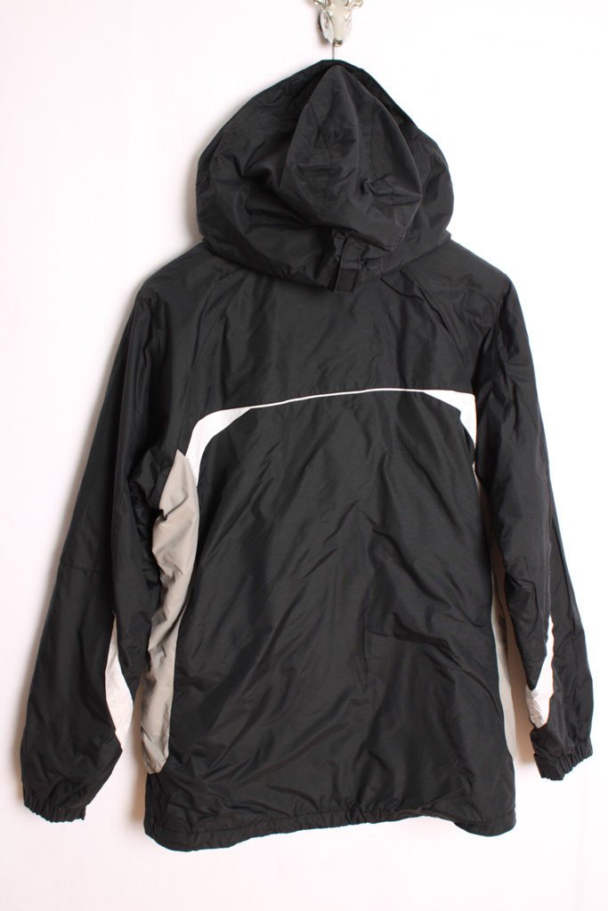 Cazadora vintage de la marca Columbia en colores negro y blanco con capucha integral.
