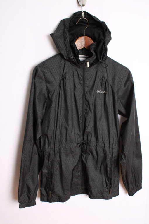 Cazadora ligera vintage de la marca Columbia en colores gris y negro con capucha integral.