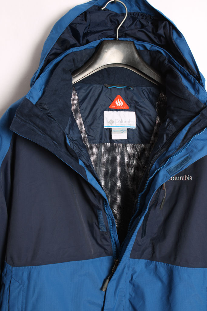 Cazadora vintage de la marca Columbia en colores azules con cazadora ligera interior a juedgo desmontable.