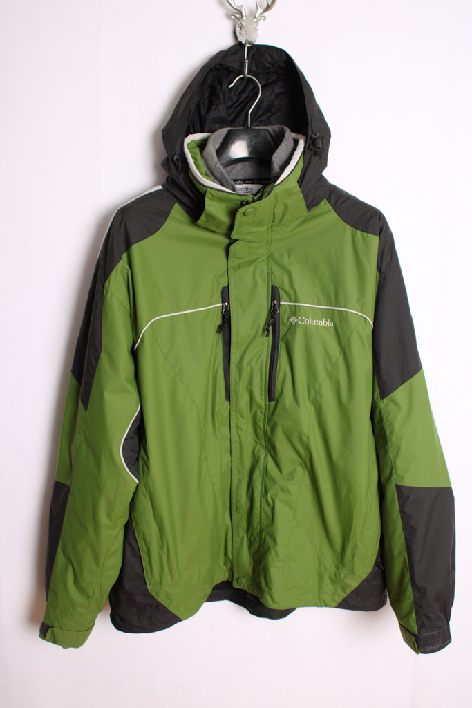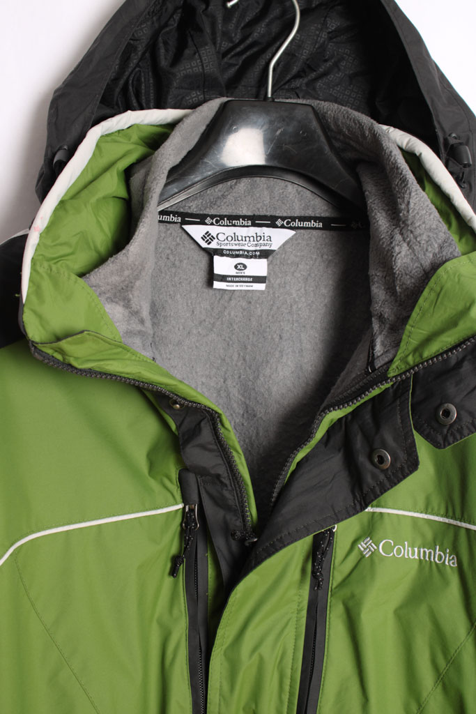 Cazadora vintage de la marca Columbia en colores verde y gris con forro polar gris interior desmontable.