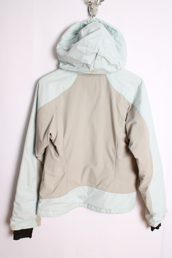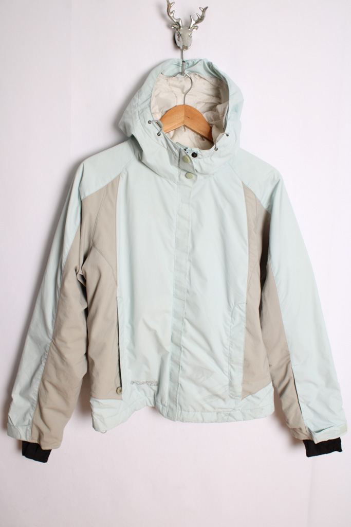 Cazadora Columbia XCO en tono gris y azul pastel  con capucha.