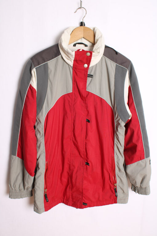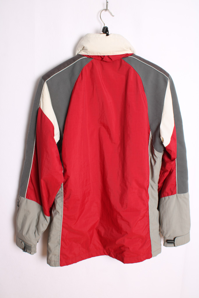Cazadora deportiva de la marca Fila en tonos gris, rojo, blanco… con capucha extraible en el cuello.*