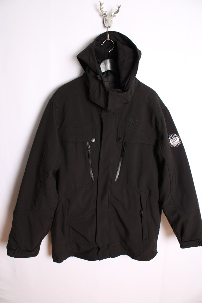 Cazadora deportiva de Reebok con capucha desmontable. Forro interior desmontable tipo plumi ligero.