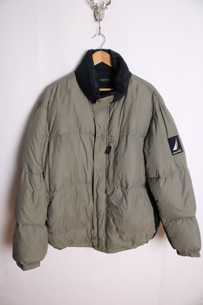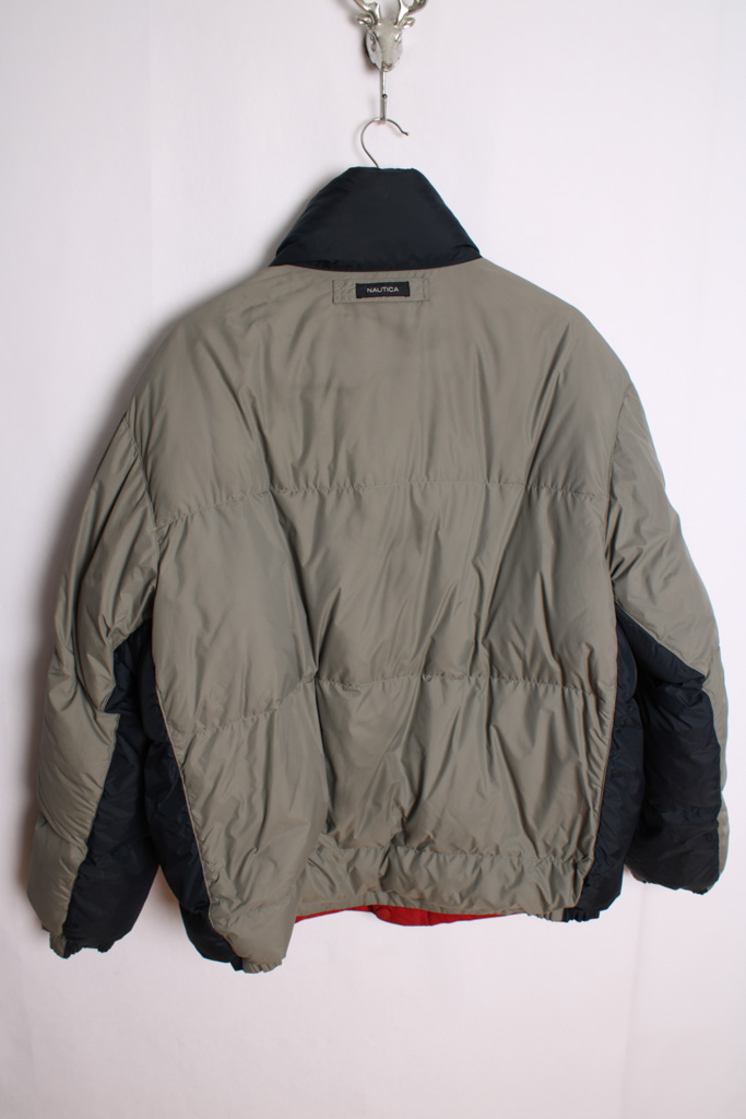 Cazadora vintage de la marca Nautica reversible tipo bomber en colores gris o azul y rojo.