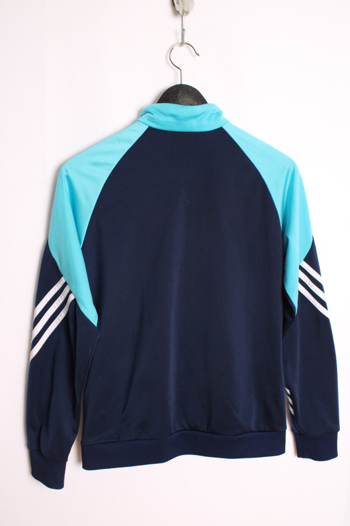 Crazy jacket  vintage de la marca Adidas en colores azul marino y celeste.