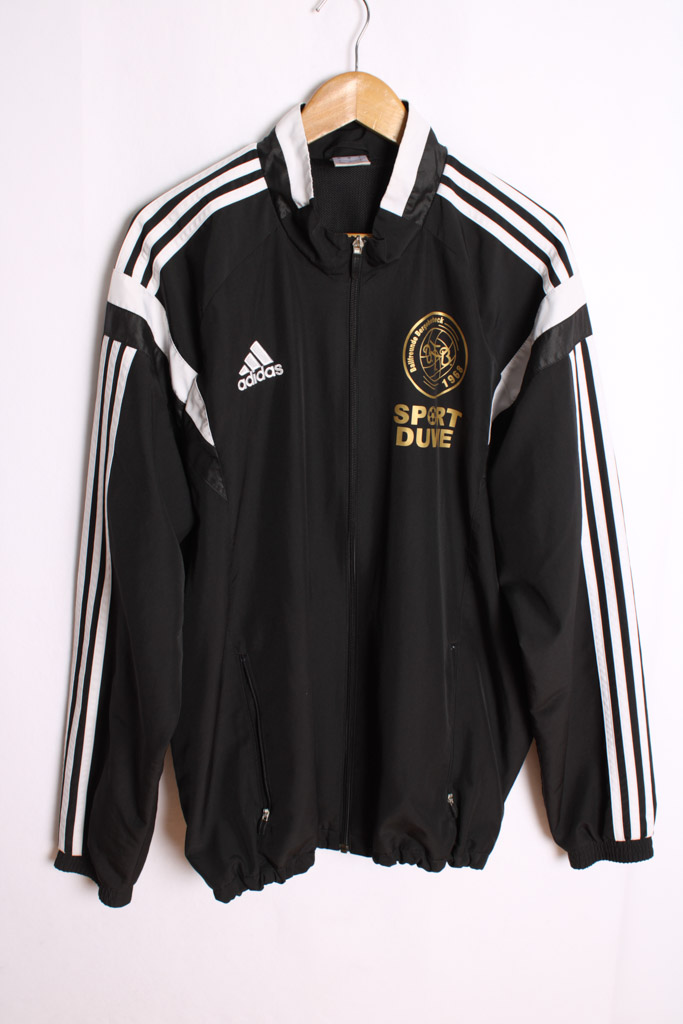 Crazy jacket vintage de la marca Adidas en color negro con franjas blancas y logo del Ballfreunde Beergeborbeck.