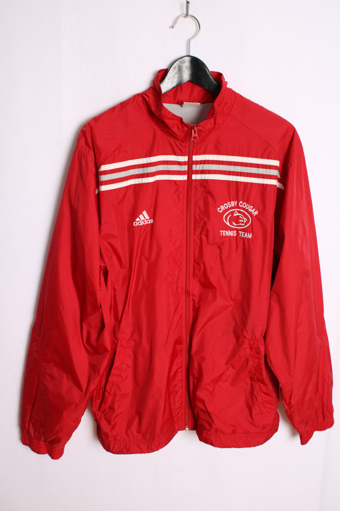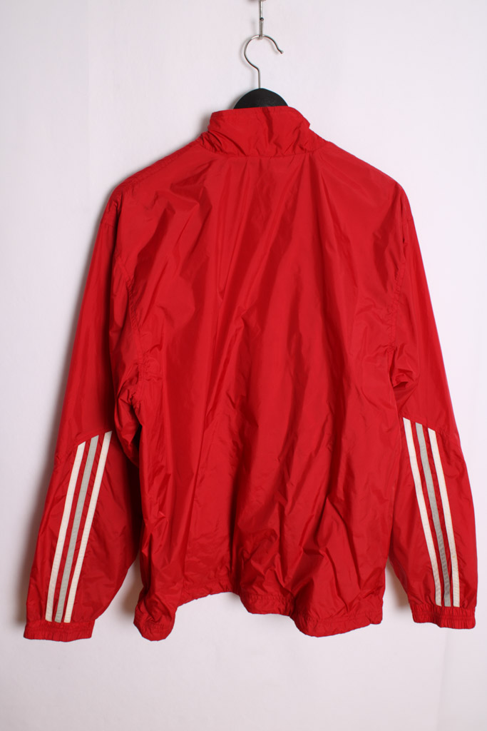 Crazy jacket vintage de la marca Adidas en color rojo con franjas blancas y grises.