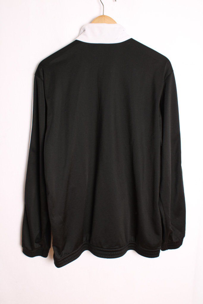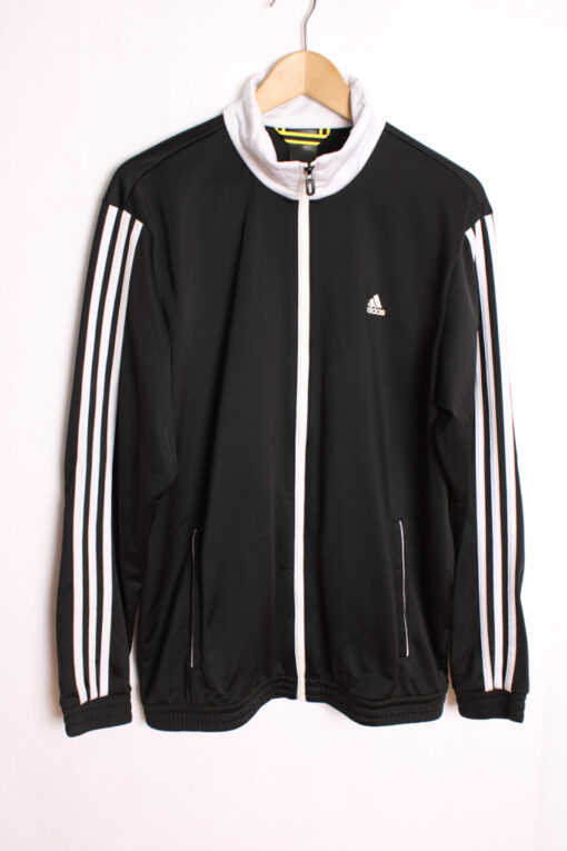 Chaqueta deportiva de Adidas en tono negro con detalles en blanco.