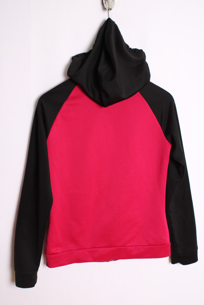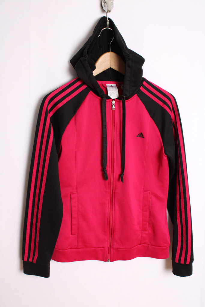 Chaqueta deportiva de Adidas en tono fucsia y negro con capucha.