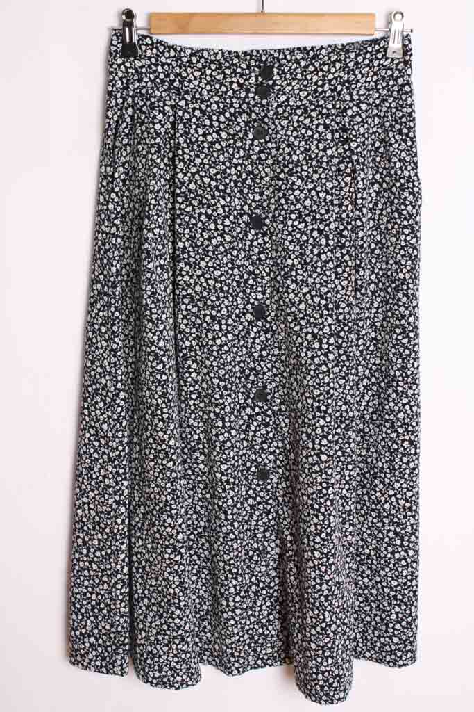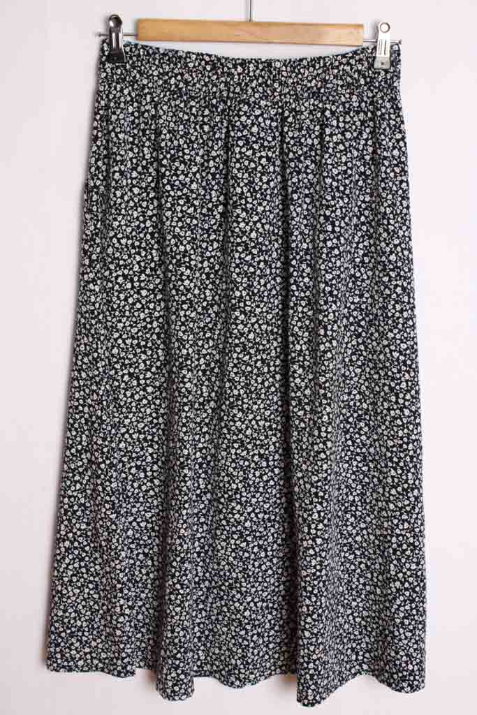 Falda vintage de primavera de largo midi en colores azul marino y blanco con estampado liberty.