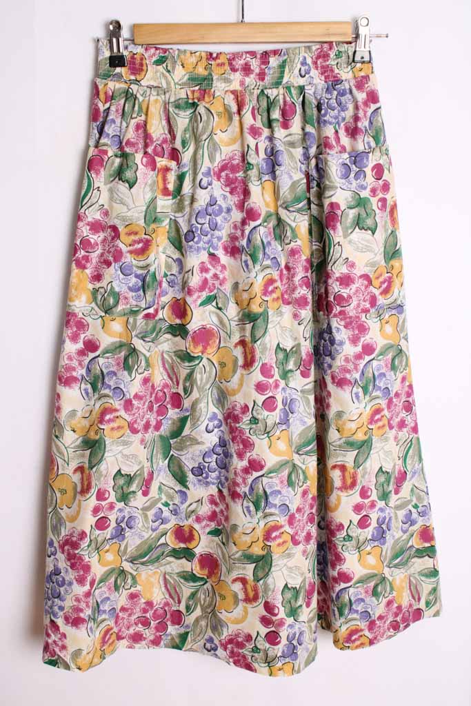 Falda Midi Vintage Estampado Frutas «S/M»