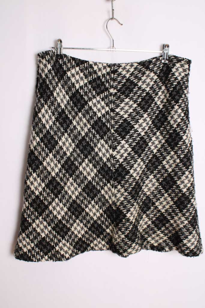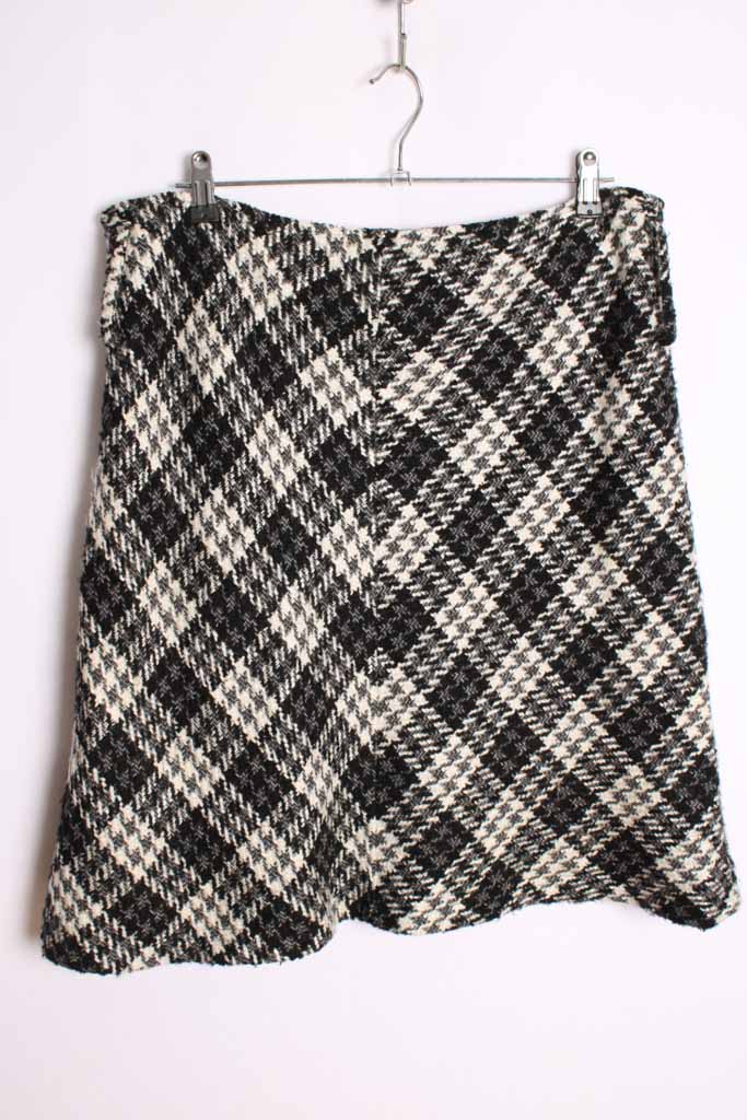 Falda de largo por encima de la rodilla en tejido tweed con estampado pata de gallo en blanco y negro.