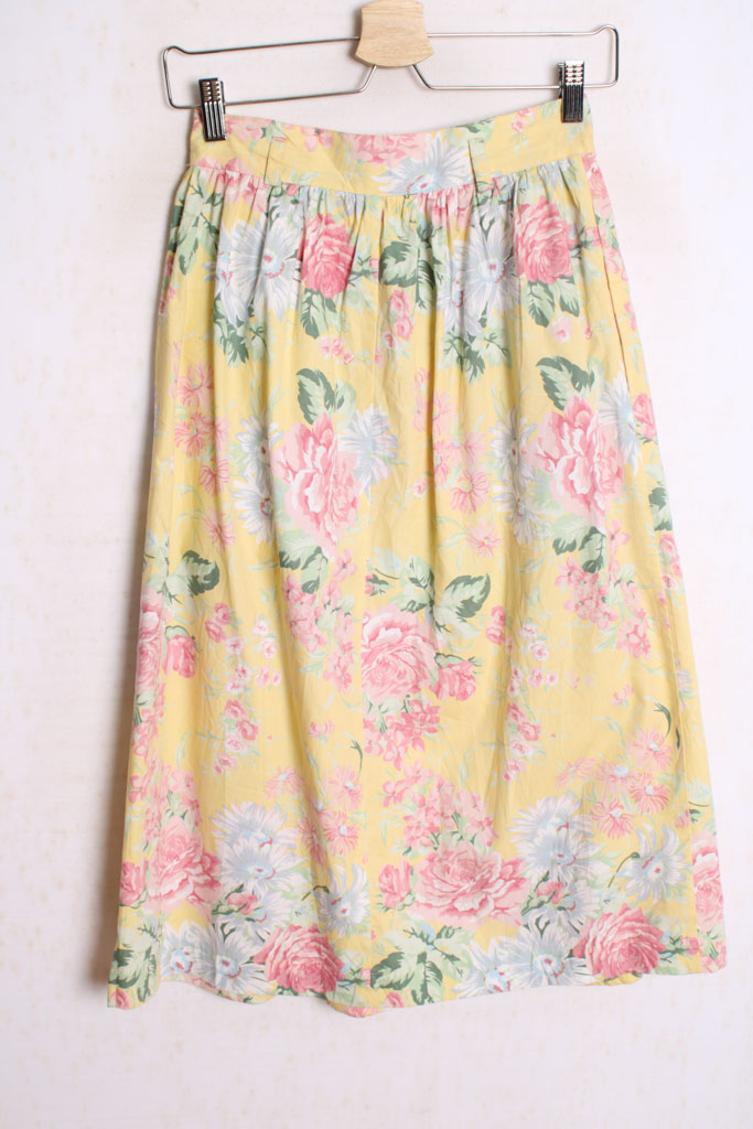 Falda Vintage Amarillo Vainilla Flores «XS»