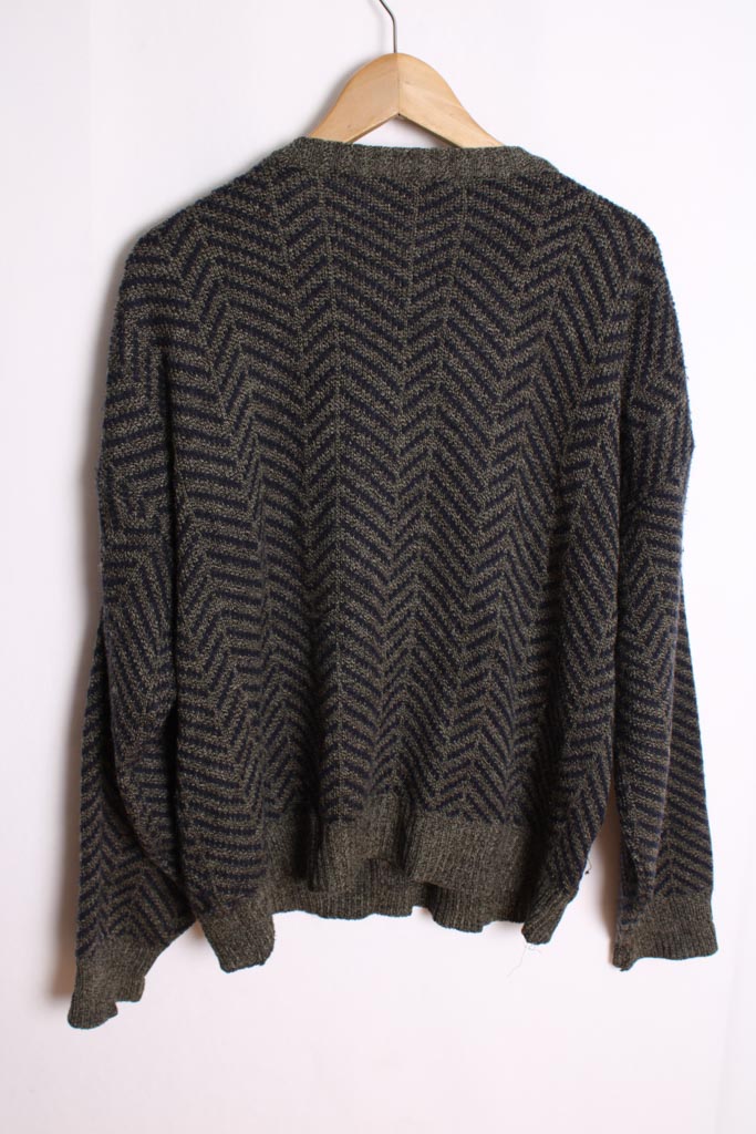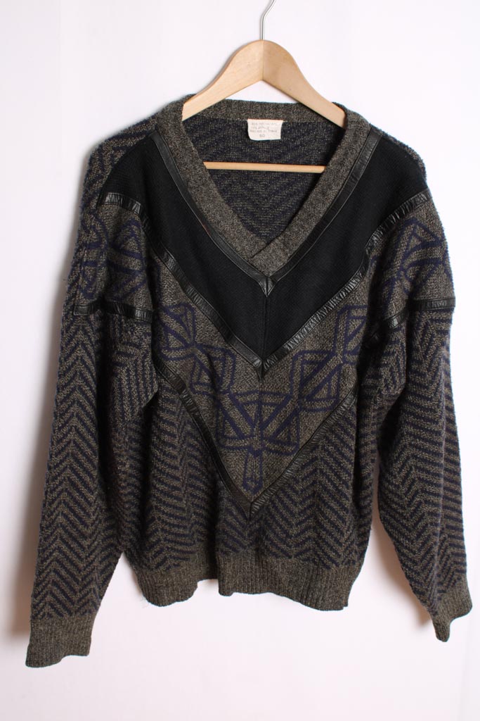 Jersey vintage para hombre en colores gris y azul marino con cuello de pico maxi.