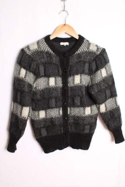 Jersey vintage de mujer en colores beige y negro con bordados en tonos dorados.