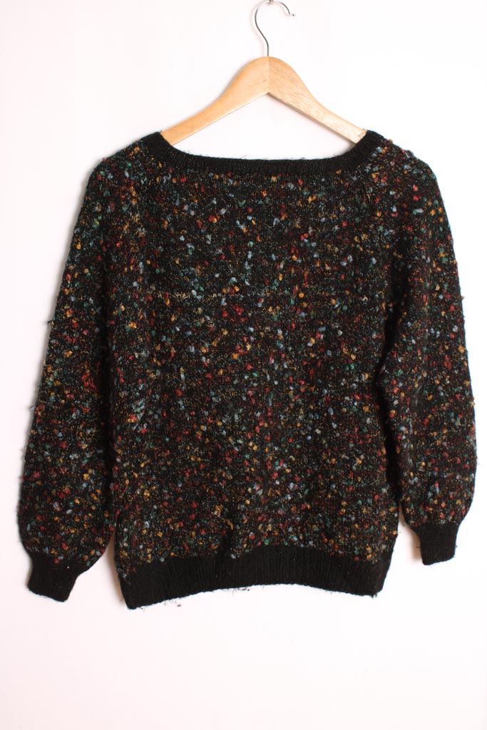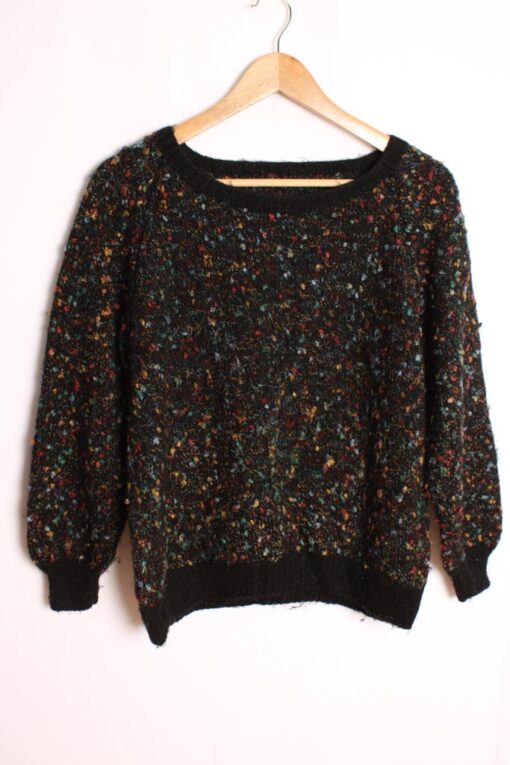 Jersey vintage de mujer en color negro con jaspeado de colores.