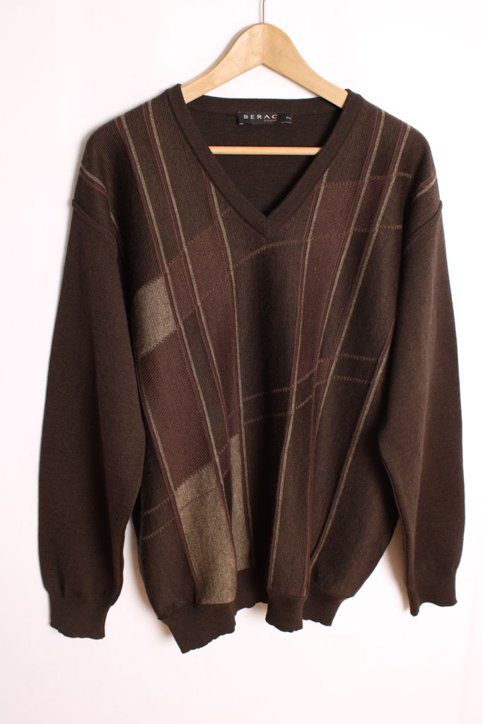Jersey Cuello Pico Vintage Marrón Geométrico «XL»