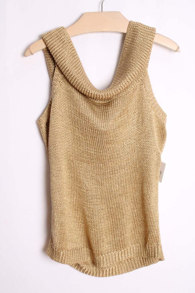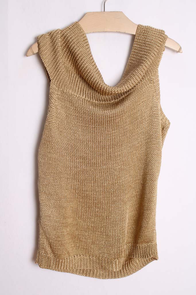 Jersey vintage para mujer con tejido de brillos en color dorado con escote bardot.