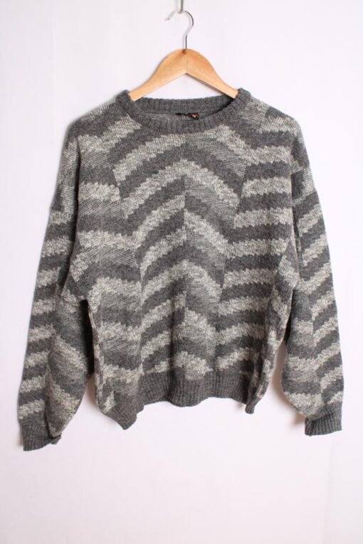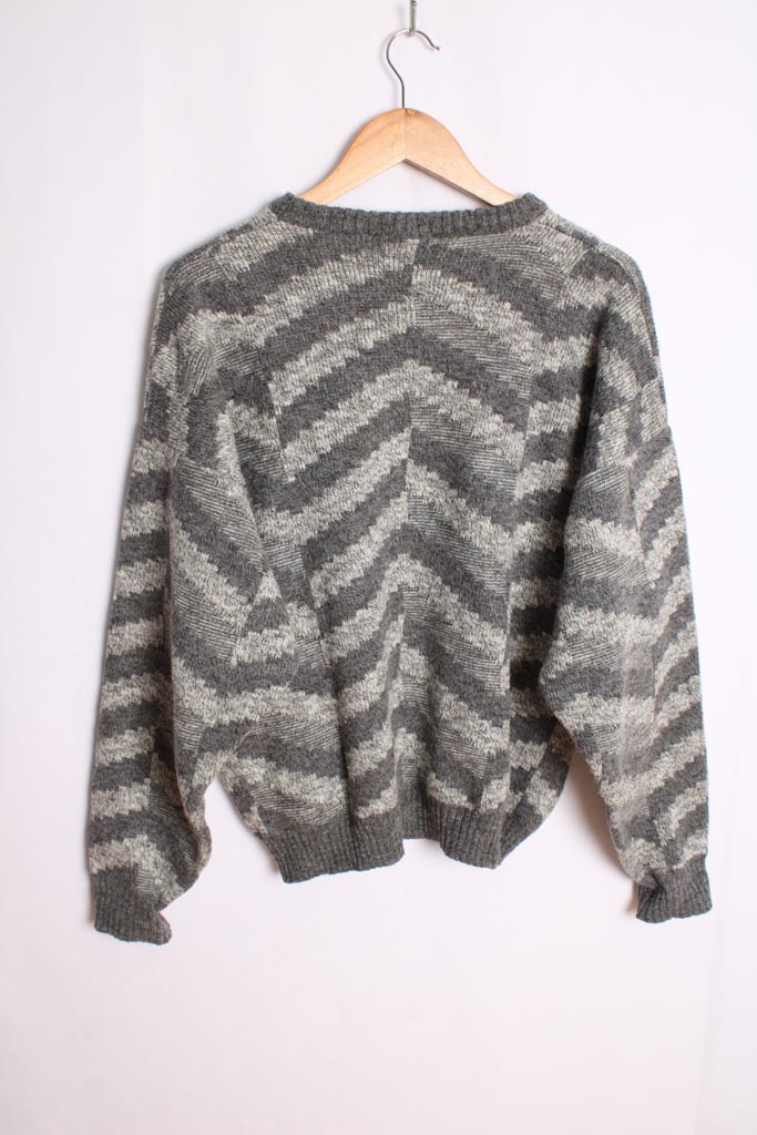 Jersey vintage de hombre con diseño de espiga en tonos grises.
