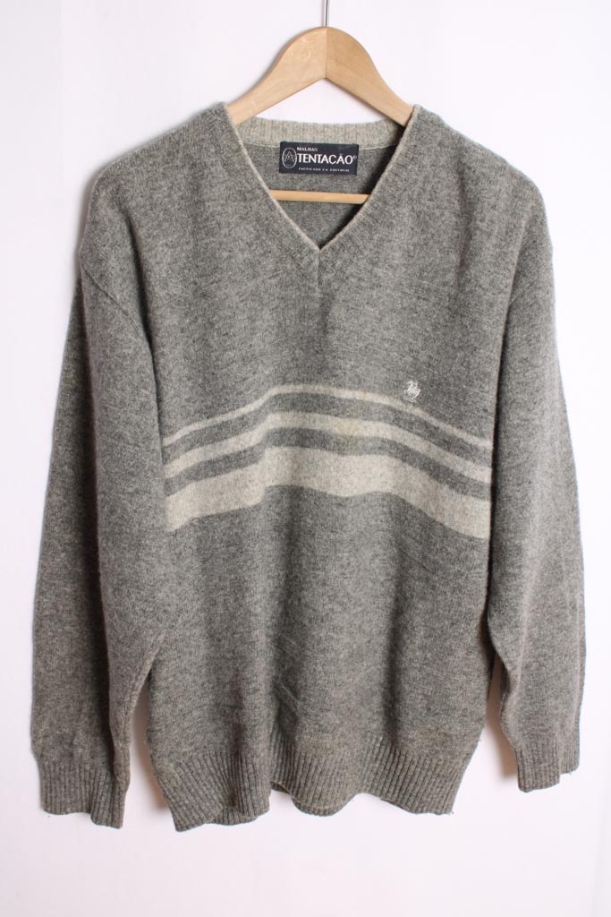 Jersey vintage para hombre en color gris con estampado horizontal en tonos grises.