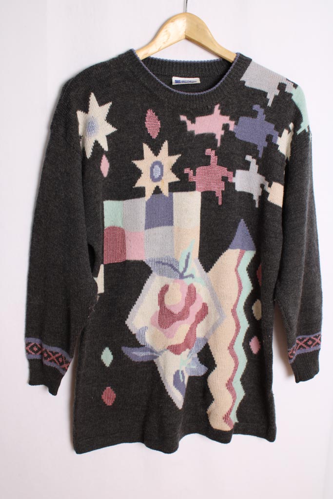 Jersey Gris con Estampado Pastel Vintage «L»