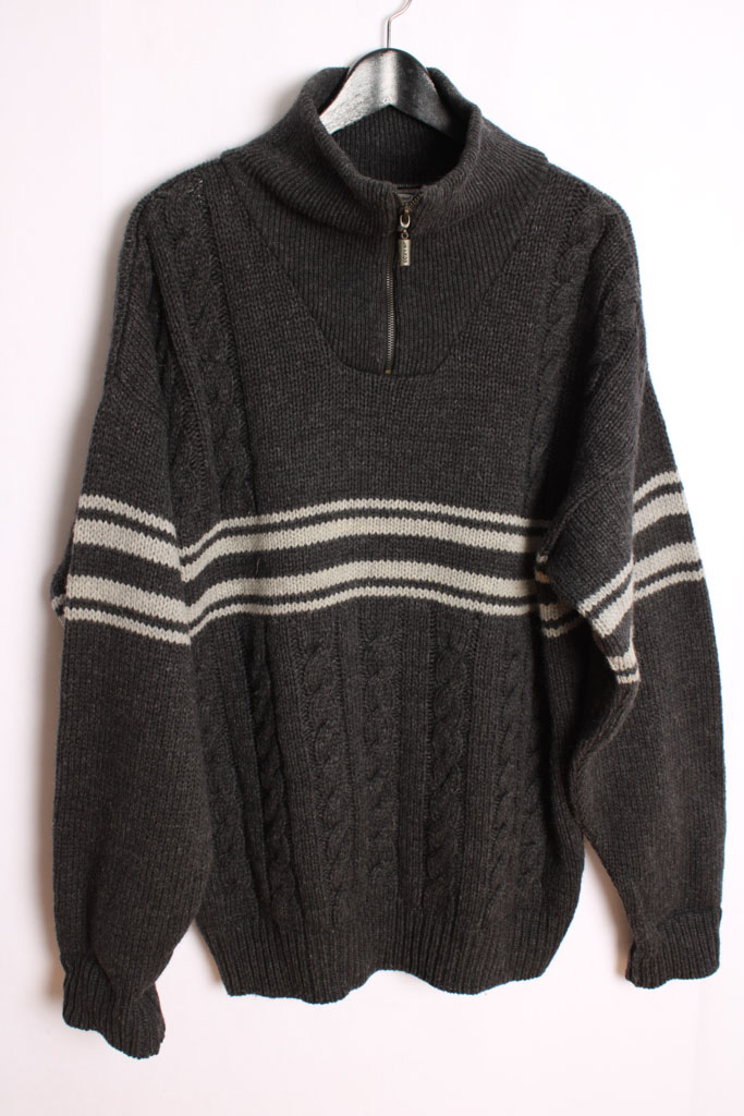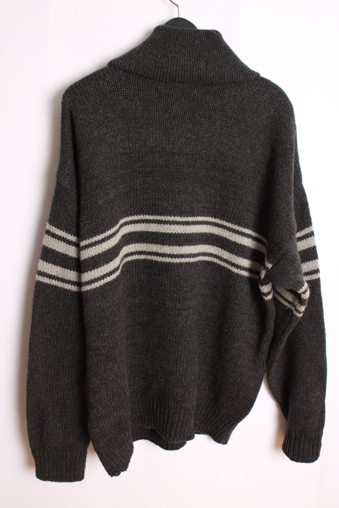 Jersey vintage de invierno para hombre de coletas  en color gris con cuello alto y cremallera.